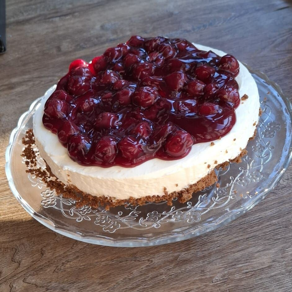 Heerlijke Monchoutaart met kersenvulling.